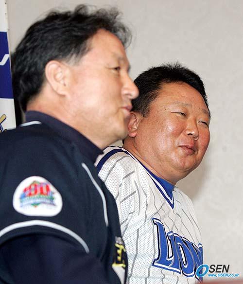 한국시리즈 개막을 하루 앞둔 14일 오후 대구시민운동장에서 열린 미디어데이 행사에서 한 기자가 삼성의 선동렬 감독에게 질문을 하며 좋은 경기를 하겠다는 대답은 듣고 싶지 않다고 했지만 답변 말미에 좋은 경기를 하겠다는 표현이 나오자 선 감독이 멋 쩍은 듯 웃고 있다./대구=손용호 기자 spjj@osen.co.kr [Copyright ⓒ OSEN(www.osen.co.kr) 무단전재 및 재배포 금지]