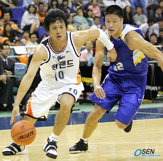 14일 부천 실내체육관에서 벌어진 인천 전자랜드 블랙슬래머와 서울 SK 나이츠의 시범경기서 전자랜드의 34세 노장 문경은(왼쪽)이 김일두를 제치며 베이스라인을 파고 들고 있다./부천=주지영 기자 jj0jj0@osen.co.kr [Copyright ⓒ OSEN(www.osen.co.kr) 무단전재 및 재배포 금지]