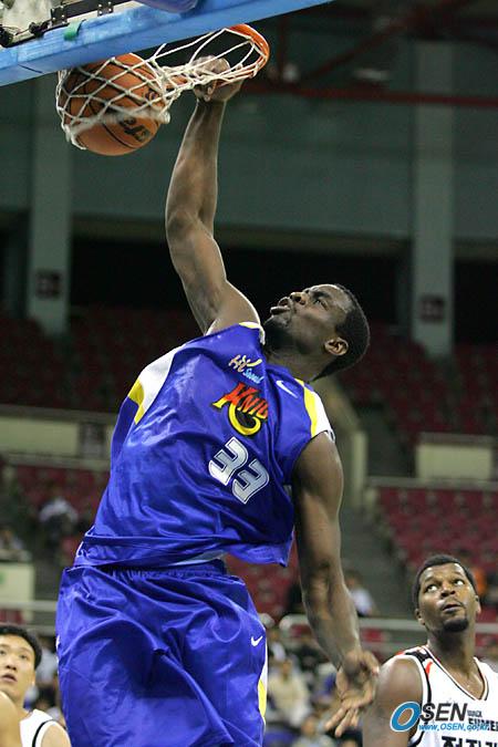 덩크슛을 내리 꽂는 SK의 새 용병 웨슬리 윌슨