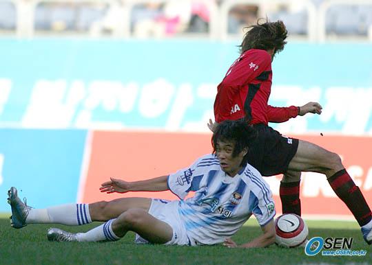16일 부천 종합운동장에서 벌어진 부천 SK와 FC 서울의 후반 서울의 박주영(왼쪽)이 부천의 전담 마크맨 조용형과 부딪쳐 넘어지며 공을 빼앗기고 있다./부천=주지영 기자 jj0jj0@osen.co.kr [Copyright ⓒ OSEN(www.osen.co.kr) 무단전재 및 재배포 금지]