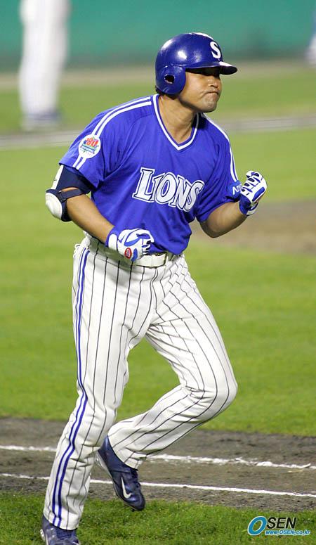 18일 잠실 구장서 벌어진 두산 베어스와 삼성 라이온즈의 한국시리즈 3차전 삼성의 8회초 2사 1,2루서 양준혁이 우측 펜스를 넘어가는 3점 홈런을 터뜨려 4-0을 만들며 그라운드를 달리고 있다./잠실=주지영 기자 jj0jj0@osen.co.kr [Copyright ⓒ OSEN(www.osen.co.kr) 무단전재 및 재배포 금지]