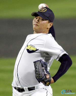 "두 달을 쉰 박명환이 포스트시즌에서 잘 던지는 건 거의 불가능하다"던 선동렬 삼성 감독의 예언은 빗나갔다. 오른쪽 어깨 회전근 손상으로 2개월 하고도 이틀 만에 실전 마운드에 오른 박명환(28)은 5이닝 무피안타로 예상을 깨고 잘 던졌다. 하지만 폭투 한 개, 그것도 경기 초반인 2회 범한 폭투가 결승점이 돼 패전 투수가 되고 말았다. 18일 잠실구장에서 펼쳐진 한국시리즈 3차전에 선발 등판한 박명환은 5회를 끝으로 물러날 때까지 안타를 한 개도 허용하지 않았다. 하지만 두 달 남짓한 실전 공백은 어쩔 수 없는 듯 1회와 2회 각각 볼넷을 두 개씩 내주며 제구력이 흔들렸다. 1회 2사 1, 2루의 위기를 넘긴 박명환은 2회 박진만과 김재걸을 볼넷으로 내보내 다시 2사 1, 2루에 몰렸다. 삼성 타순은 다시 상위타선으로 돌아 1번 조동찬. 4구째 2루 주자 박진만의 3루 도루를 허용한 박명환은 1, 3루에서 6구째 원바운드 폭투를 범했다. 3루 주자 박진만은 여유있게 홈을 밟았고 도루를 시도하기 위해 2루로 스타트를 끊었던 김재걸은 3루에 안착했다. 박명환은 조동찬을 우익수 플라이로 잡아 추가 실점은 면했지만 두산은 극심한 결정력 부족으로 결국 단 한 점을 내지 못했다. 정규시즌 부상으로 후반기를 거의 뛰지 못하고도(112⅓이닝 투구) 8개 팀 투수 중 폭투 1위(17개)를 기록했던 박명환은 한해 농사중 가장 중요한 순간에 또다시 폭투에 발목을 잡히고 말았다. 이날 폭투로 박명환은 한국시리즈 통산 6번째 폭투를 범해 박동희(은퇴)를 제치고 한국시리즈 최다 폭투 단독 1위에 오르는 불명예를 기록했다. 박명환은 2000년 현대와 한국시리즈에서 3개, 2001년 삼성과의 한국시리즈에서 2개의 폭투를 각각 범한 바 있다. 잠실=이종민 기자 mini@osen.co.kr [Copyright ⓒ OSEN(www.osen.co.kr) 무단전재 및 재배포 금지]