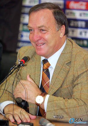 24일 유럽 출장을 앞두고 21일 서울 신문로 축구회관에서 기자 간담회를 가진 아드보카트 국가대표팀 감독은 인사말을 해달라는 요청에 대뜸 "삼성이 한국시리즈를 우승한 데 축하한다"고 말했다. 이어 유럽에서는 가장 야구가 많이 보급돼 있고 수준도 높은 네덜란드 출신이어선지 "나도 야구를 매우 좋아한다. 삼성의 선동렬 감독이 선수가 필요하다면 내게 말해도 좋다"며 긴장감이 흐르는 회의실에 웃음을 던진 뒤 여유있는 웃음으로 질문에 화답했다. ○…"Good question(좋은 질문이다)". 아드보카트 감독은 지난 달 30일 부임 이후 가진 첫 기자회견에서 "좋은 질문"이라는 말을 수 차례 반복하며 기자들의 질문에 성실히 답변했다. 이어 질문자과 눈을 맞추기 위해 몸을 이리저리 움직이는 모습도 보였다. 이날도 그는 '앞으로 독일월드컵까지의 계획을 월별로 설명해 달라'는 질문에 "좋은 질문"이라면 말을 이어갔다. ○…간담회 말미에 아드보카트 감독은 협회 직원의 요청에 따라 가족 관계에 관한 '평이한' 질문을 받았다. 이에 대답한 아드보카트 감독의 말에 좌중이 자지러졌다. "비공식적인 가족을 묻는 건지 공식적인 가족을 물어보는지 모르겠다"고 말한 것. 그는 "일단 가족은 있고 부인과 애들이 있다"며 환하게 웃으면서 간담회를 마쳤다. 국영호 기자 iam905@osen.co.kr [Copyright ⓒ OSEN(www.osen.co.kr) 무단전재 및 재배포 금지]