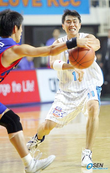 22일 전주 실내체육관에서 벌어진 전주 KCC와 울산 모비스의 경기서 KCC 이상민이 패스를 넣었으나 달려들던 모비스 양동근이 오른손을 뻗어 볼을 가로채고 있다./전주=주지영 기자 jj0jj0@osen.co.kr [Copyright ⓒ OSEN(www.osen.co.kr) 무단전재 및 재배포 금지]