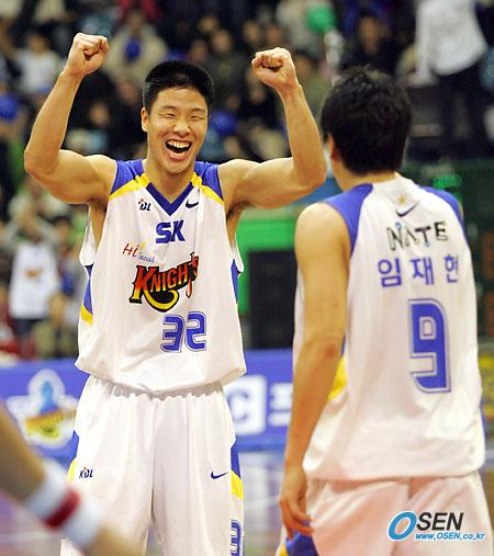 23일 잠실학생체육관에서 벌어진 서울 SK 나이츠와 부산 KTF 매직윙스의 경기서 82-79로 신승한 SK의 김일두(왼쪽)가 두 주먹을 올리며 임재현과 기뻐하고 있다./잠실=주지영 기자 jj0jj0@osen.co.kr [Copyright ⓒ OSEN(www.osen.co.kr) 무단전재 및 재배포 금지]
