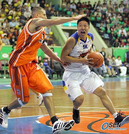 골밑 돌파를 노리는 SK 김일두