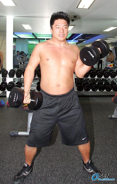 25일 오후 서울 역삼동 스타타워의 휴레스트에서 오는 11월 5일 올림픽공원 체조경기장에서 벌어질 K-1 히어로스 대회에 출전할 한국 선수들의 기자회견이 끝난 뒤 이날 프라이드서 K-1으로 전향하는 조인식을 가진 최무배가 역기로 근력 강화 훈련을 하고 있다./주지영 기자 jj0jj0@osen.co.kr [Copyright ⓒ OSEN(www.osen.co.kr) 무단전재 및 재배포 금지]