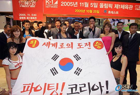 '히어로스-맥스 걸'들과 함께 승리를 다짐하는 한국 격투가들