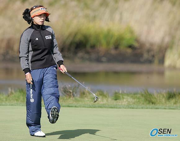29일 제주의 CJ 나인브릿지 골프코스에서 열린 미LPGA투어 CJ 나인브릿지클래식 대회 2라운드 13번홀서 김미현이 버디 퍼팅에 실패한 뒤 아쉬워하고 있다. 김미현은 이날 1언더파를 기록, 3언더파로 장정과 공동 2위로 올라섰다./제주=손용호 기자 spjj@osen.co,kr [Copyright ⓒ OSEN(www.osen.co.kr) 무단전재 및 재배포 금지]