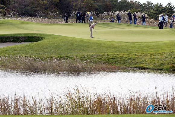 29일 제주의 CJ 나인브릿지 골프코스에서 열린 미LPGA투어 CJ 나인브릿지클래식 대회 2라운드 18번홀서 이지영이 파 퍼팅을 노리고 있다. 이지영은 이 홀에서 더블보기를 범했으나 종합 6언더파로 첫날에 이어 선두를 유지했다./제주=손용호 기자 spjj@osen.co,kr [Copyright ⓒ OSEN(www.osen.co.kr) 무단전재 및 재배포 금지]