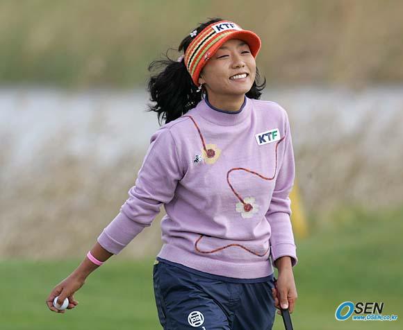 30일 제주의 CJ 나인브릿지 골프코스에서 끝난 CJ 나인브릿지클래식서 이지영이 3라운드 합계 5언더파로 우승을 차지했다. 카린 코크와 공동 2위를 차지한 김미현이 18번홀에서 파 퍼팅에 성공할 때 갤러리들이 환호하자 미소 짓고 있다./제주=손용호 기자 spjj@osen.co.kr [Copyright ⓒ OSEN(www.osen.co.kr) 무단전재 및 재배포 금지]