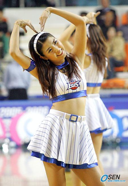 2일 전주 실내체육관에서 벌어진 2005~2006 KCC 프로농구 전주 KCC와 부산 KTF의 경기 도중 KCC 치어리더들이 플로어에 나와 '하트 춤'을 관중들에게 선사하고 있다./전주=주지영 기자 jj0jj0@osen.co.kr [Copyright ⓒ OSEN(www.osen.co.kr) 무단전재 및 재배포 금지]