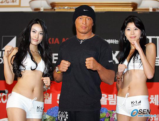 3일 서울 논현동 임피리얼 팰리스 호텔에서 K-1 코리아 맥스 & 히어로스 대회 참가자의 개별 인터뷰가 열렸다. 재일동포 유도 선수 출신으로 이번 히어로스 대회 한국팀 주장을 맡은 추성훈이 K-1걸들과 포즈를 취하고 있다./주지영 기자 jj0jj0@osen.co.kr [Copyright ⓒ OSEN(www.osen.co.kr) 무단전재 및 재배포 금지]