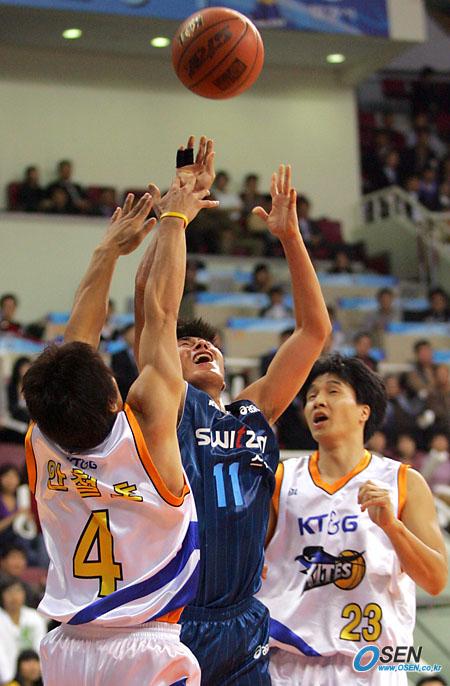 4일 안양 실내체육관에서 벌어진 2005~2006 KCC 프로농구 안양 KT&G와 전주 KCC의 경기서 KCC의 이상민(가운데)이 KT&G 안철호와 윤영필(오른쪽)의 수비에 막히며 볼을 놓치고 있다./안양=주지영 기자 jj0jj0@osen.co.kr [Copyright ⓒ OSEN(www.osen.co.kr) 무단전재 및 재배포 금지]