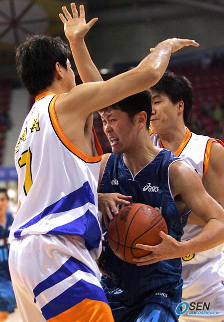 4일 안양 실내체육관에서 벌어진 2005~2006 KCC 프로농구 안양 KT&G와 전주 KCC의 경기서 KT&G의 은희석(왼쪽)과 윤영필이 KCC의 추승균을 샌드위치로 막고 압박하고 있다./안양=주지영 기자 jj0jj0@osen.co.kr [Copyright ⓒ OSEN(www.osen.co.kr) 무단전재 및 재배포 금지]