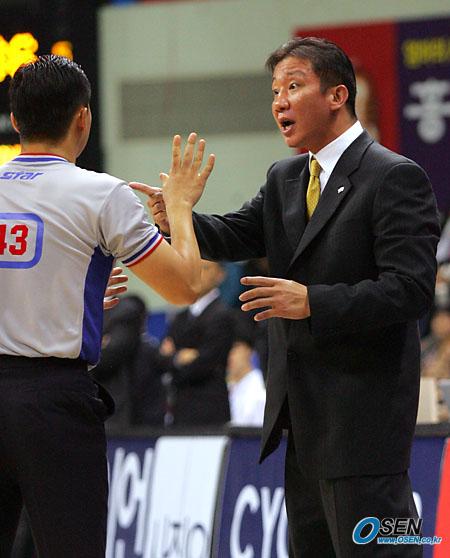 4일 안양 실내체육관에서 벌어진 2005~2006 KCC 프로농구 안양 KT&G와 전주 KCC의 경기서 허재 KCC 신임 감독이 파울 선언과 관련 얼굴이 벌개질 정도로 심판에게 항의하고 있다./안양=주지영 기자 jj0jj0@osen.co.kr [Copyright ⓒ OSEN(www.osen.co.kr) 무단전재 및 재배포 금지]