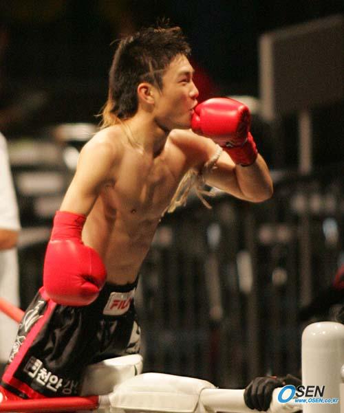 5일 서울 올림픽공원 체조경기장에서 벌어진 K-1 코리아 맥스 2005 대회 제3 경기서 일본의 긴지에 1라운드 2분 5초만에 KO승을 거둔 '외팔이' 최재식이 로프에 올라가 관중들을 향해 손키스를 보내고 있다./올림픽공원=손용호 기자 spjj@osen.co.kr [Copyright ⓒ OSEN(www.osen.co.kr) 무단전재 및 재배포 금지]