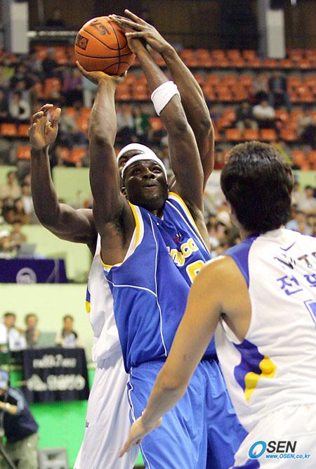 5일 잠실학생체육관에서 벌어진 2005~2006 KCC 프로농구 서울 삼성과 서울 SK의 경기서 삼성의 새 용병 올루미데 오예데지(가운데)가 골밑슛을 쏘는 순간 뒤에서 SK의 웨슬리 윌슨이 슛블록을 시도하고 있다./잠실학생체=주지영 기자 jj0jj0@osen.co.kr [Copyright ⓒ OSEN(www.osen.co.kr) 무단전재 및 재배포 금지]