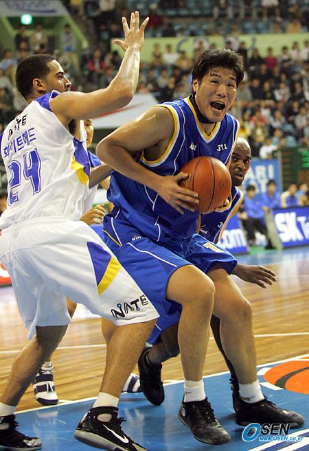5일 잠실학생체육관에서 벌어진 2005~2006 KCC 프로농구 서울 삼성과 서울 SK의 경기서 삼성의 센터 서장훈이 SK의 게이브 미나케 일시 대체 용병인 화이트헤드의 마크 앞에서 골밑슛을 노리고 있다. /잠실학생체=주지영 기자 jj0jj0@osen.co.kr [Copyright ⓒ OSEN(www.osen.co.kr) 무단전재 및 재배포 금지]