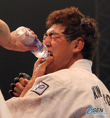 5일 서울 올림픽공원 체조경기장에서 벌어진 K-1 히어로스 2005 서울 대회 제7 경기서 숀 오헤어를 꺾은 김민수가 힘들어 하며 물을 마시고 있다./올림픽공원=주지영 기자 jj0jj0@osen.co.k [Copyright ⓒ OSEN(www.osen.co.kr) 무단전재 및 재배포 금지]