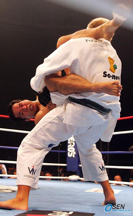 5일 서울 올림픽공원 체조경기장에서 벌어진 K-1 히어로스 마지막 제11 경기서 추성훈이 오쿠다 마사카쓰에 파운딩 공격으로 TKO승을 거두었다. 추성훈은 경기 소감을 말하며 자신은 귀화를 해서 한국 사람이 아니지만 자신의 몸에는 한국인의 피가 흐른다며 고국에 대한 진한 애정을 표시했다. 추성훈이 오쿠다를 번쩍들어 올리고 있다./올림픽공원=주지영 기자 jj0jj0@osen.co.k [Copyright ⓒ OSEN(www.osen.co.kr) 무단전재 및 재배포 금지]