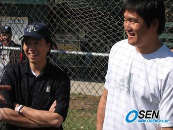 "올스타전 홈런 더비 때 이만수 코치를 초빙할 생각이었다". LA 다저스 최희섭(26)과 에이전트 이치훈 씨는 6일(이하 한국시간) 시즌 결산 인터뷰를 가지면서 알려지지 않았던 비화 몇 가지를 들려줬다(사진). 이치훈 씨는 이날 "사실 올스타전 홈런 더비 때 배팅볼 투수를 이만수 시카고 화이트삭스 불펜보조코치에게 부탁하려 했다"고 밝혔다. 아무래도 이 코치가 던져주면 미국인보다는 최희섭의 입맛에 맞는 공을 더 잘 던져줄 수 있지 않을까 여겼기 때문이었다. 그러나 이치훈 씨는 이 '프로젝트'를 "중도에 포기했다"고 말했다. 첫째로 이 코치가 화이트삭스에 적을 두고 있다보니 다저스 선수인 최희섭을 위해 공을 던져주려면 거쳐야 될 절차가 만만치 않았다고 했다. 이치훈 씨는 또 한 가지 이유로는 "막판까지 최희섭의 홈런더비 참가 여부가 흔들려서"라고 밝혔다. 이치훈 씨는 "우리는 분명히 참가하는 것으로 들었다. 그런데 언론에서 스즈키 이치로(시애틀)나 마쓰이 히데키(양키스)가 참가할지 모른다는 얘기가 나오니 (이 코치에게) 부탁하기 쉽지 않았다"고 덧붙였다. 또 최희섭은 지난 5월 자신과 충돌해 시즌을 마감하는 부상을 당한 스캇 롤렌(세인트루이스) 얘기를 꺼내더니 "저 때문에 타격이 컸다면서요?"라고 반문했다. 세인트루이스가 3루수 롤렌의 결장 탓에 휴스턴과의 내셔널리그 챔피언십 시리즈에서 손실이 컸던 점을 암시한 발언이었다. 로스앤젤레스=김영준 특파원 sgoi@osen.co.kr [Copyright ⓒ OSEN(www.osen.co.kr) 무단전재 및 재배포 금지]