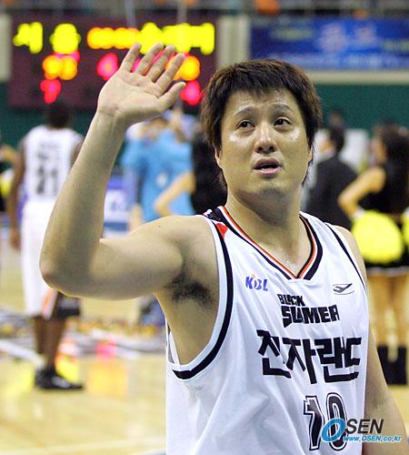 6일 부천실내체육관에서 벌어진 2005~2006 KCC 프로농구 인천 전자랜드 블랙슬래머와 서울 SK 나이츠의 경기서 98-93으로 승리, 5연패 끝에 시즌 첫 승을 거둔 전자랜드의 문경은이 팬들에게 손을 흔들며 기뻐하고 있다./부천=주지영 기자 jj0jj0@osen.co.kr [Copyright ⓒ OSEN(www.osen.co.kr) 무단전재 및 재배포 금지]