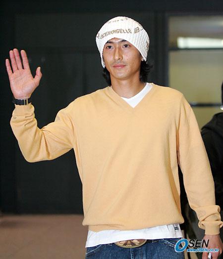 입국장을 나서며 손을 흔드는 안정환