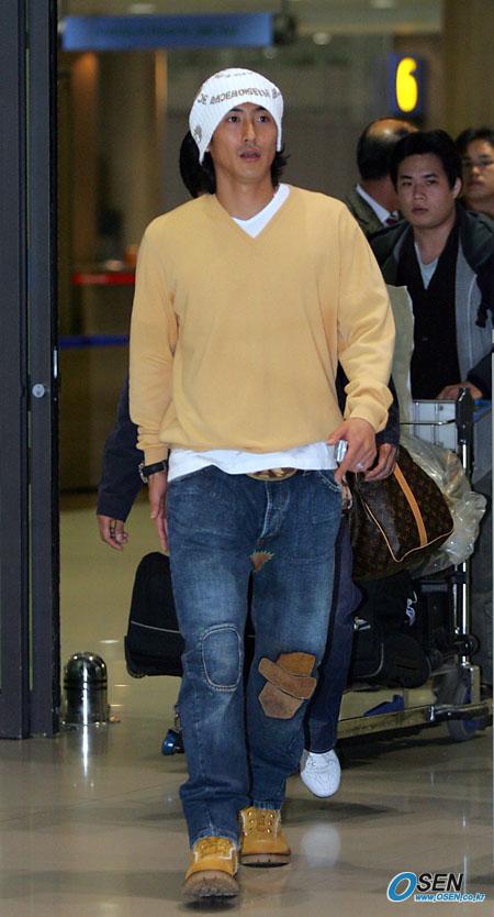 '비니 모자'를 쓰고 입국장을 나오는 안정환