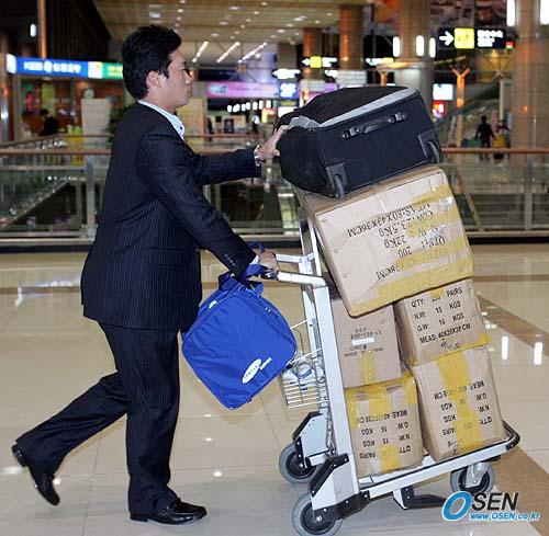 오는 10일부터 일본 도쿄돔에서 벌어지는 코나미컵 아시아시리즈 2005 대회에 한국 프로야구 대표로 참가하는 삼성 라이온즈가 8일 아침 OZ1025편으로 김포공항을 통해 출국했다. 올해 한국시리즈 MVP이자 정규리그 신인왕에 오른 오승환이 단체 수하물을 밀고 가고 있다./김포공항=손용호 기자 spjj@osen.co.kr [Copyright ⓒ OSEN(www.osen.co.kr) 무단전재 및 재배포 금지]