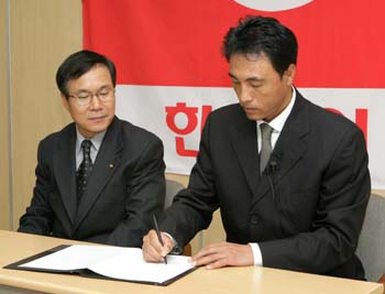 강산도 두 번 모습을 바꿀 긴 시간인 20년. 세월을 거슬러 달려가고 있는 송진우가 20년의 벽을 넘을 수 있을까. '한국의 로저 클레멘스' 한화 송진우(39)가 지난 7일 2년간 총액 14억 원에 FA 계약서에 사인함에 따라 한국 프로야구 사상 전에 없는 새 장을 열 가능성이 생겼다. 1982년 프로야구 출범 후 한 명도 없었던 '20년 현역 선수'다. 부상이 없는 한 오는 2007년까지 선수 생활을 계속할 수 있게 된 송진우는 1989년 한화의 전신, 빙그레에 입단, 2007년은 프로 19번째 시즌이 된다. 프로야구 출범 후 지금까지 가장 오래 현역 생활을 이어간 선수는 올 시즌을 끝으로 은퇴한 장종훈(현 한화 2군 코치)이다. 고졸 연습생으로 송진우보다 2년 빠른 1987년 프로에 데뷔한 장종훈은 올해까지 19년을 그것도 한화(빙그레 포함) 한 팀에서만 뛰어 투수 타자를 통틀어 최장수 현역 생활을 기록했다. 투수 쪽에선 김정수(현 기아 코치)가 18시즌을 뛴 게 최장 기록이다. 1986~1999년 14년을 해태에서 뛴 김정수는 SK 한화로 유니폼을 갈아입으며 2003년 은퇴, 18년간 현역 생활을 했다. 한화와 2년 재계약을 함에 따라 송진우는 김정수의 투수 기록을 넘어 장종훈의 프로 최장 기록과 타이를 이룰 수 있게 됐다. 2년 후의 일이지만 송진우가 프로야구는 물론 국내 프로 스포츠 사상 최초로 20년 현역을 채울지 관심사다. 송진우는 우리 나이로 마흔 살인 올시즌에 사상 최고령 완봉승 신기록을 세우는 등 철저한 자기 관리로 나이를 잊은 활약을 펼치고 있다. 2년 계약이 끝난 뒤 한화와 1년 더 계약을 연장할 가능성이 충분해 보인다. 20년을 한화 한 팀에서만 뛰는 초유의 영광스런 기록을 남기게 돼 부상이나 급격한 기량 저하 등 변수만 없다면 한화 구단으로서도 마다할 이유가 없다. 세월을 거슬러 올라가고 있는 송진우가 프로야구 사상 첫 20년 현역을 채워 최고의 '철인'으로 우뚝 설 수 있을까. 지금까지도 그랬지만 앞으로도 송진우의 발걸음 하나하나가 주목을 받게 될 것으로 보인다. 이종민 기자 mini@osen.co.kr 송진우가 송규수 단장이 지켜보는 가운데 계약서에 사인하고 있다./한화 이글스 제공 [Copyright ⓒ OSEN(www.osen.co.kr) 무단전재 및 재배포 금지]