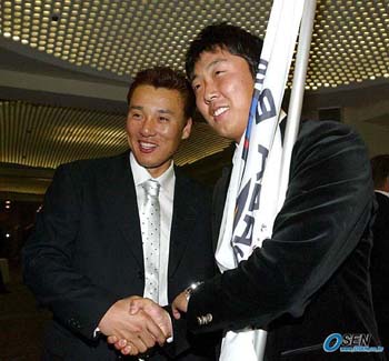 ‘결승에서 보자’. 삼성 에이스 배영수와 롯데 에이스 와타나베가 8일 만나 선전을 다짐했다. 둘은 삼성과 롯데가 코나미컵 아시아시리즈 결승에 오를 경우 선발 맞대결을 벌어야 할 처지다. 둘의 만남은 이승엽의 소개로 이루어졌다. 8일 저녁 도쿄시내 다카나와 프린스 호텔에서 이번 대회 참가선수단을 대상으로 한 리셉션이 열렸다. 오후 7시부터 시작된 행사에 앞서 참가 4개국 선수들은 리셉션 장소 앞에서 따로 모여 대기했다. 행사에 선수단 입장 순서가 있었기 때문. 삼성 선수단이 모여 있던 장소를 찾아온 이승엽은 선동렬 감독 등 코칭스태프와 인사를 나눈 뒤 배영수를 따로 불렀다. 반갑게 그 동안의 안부를 주고 받더니 이승엽은 배영수를 이끌고 롯데 선수단이 대기하고 있던 장소로 이동했다. 전체 선수들 앞에 배영수와 나란히 선 이승엽은 “ 이 선수가 바로 삼성의 에이스 투수”라고 소개했다. 이어 “결승전 상대는 만나고 가야지”라며 한 쪽에 앉아 있던 와타나베 앞으로 향했다. 와타나베는 이승엽으로부터 배영수를 소개 받자 깜짝 놀라는 모습. 둘이 인사를 나눴고 이승엽의 ‘통역’으로 몇 마디 이야기를 나눴다. 마침 와타나베 옆에는 일본시리즈 MVP를 차지한 이마에가 앉아 있어 배영수는 결승전의 호적수와도 인사를 나눌 수 있었다. 배영수는 이승엽과 대화에 대해서는 “그 동안 궁금했던 것을 서로 물어봤다. 야구 얘기는 별로 없었다”고 말했다. 아울러 일본선수들과 이야기를 나눈 것과 관련 “(이) 승엽이 형이 일본어가 많이 는 것 같다. 영리한 사람이라 다른 것 같다”고 짤막한 촌평을 남겼다. 이승엽 역시 “오랜만에 만나서 할 이야기가 너무 많다”며 연신 즐거운 표정을 감추지 못했다. 도쿄=박승현 기자 nanga@osen.co.kr 배영수와 함께 포즈를 취한 이승엽./도쿄=손용호 기자 spjj@osen.co.kr [Copyright ⓒ OSEN(www.osen.co.kr) 무단전재 및 재배포 금지]