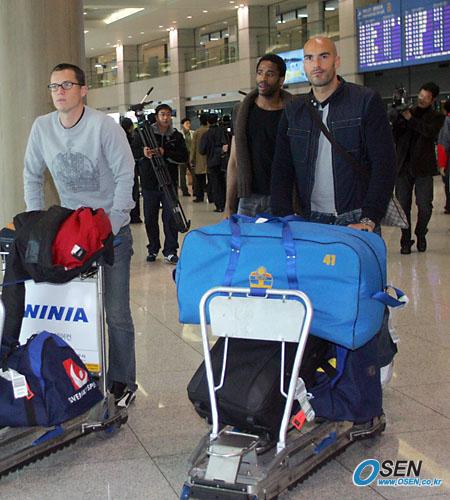 입국장을 나오는 스웨덴 대표선수들