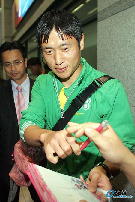 오는 12일 스웨덴 및 16일 세르비아-몬테네그로와 친선경기를 가질 한국대표팀의 이영표가 9일 오후 런던으로부터 KE908편으로 인천공항을 통해 귀국했다. 이영표가 팬에게 사인해 준 뒤 볼펜을 건네고 있다./인천공항=주지영 기자 jj0jj0@osen.co.kr [Copyright ⓒ OSEN(www.osen.co.kr) 무단전재 및 재배포 금지]