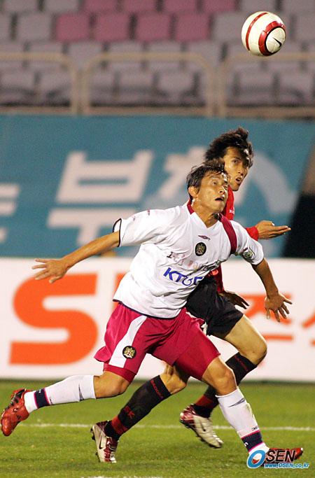 9일 부천 종합운동장서 벌어진 부천 SK와 대전 시티즌의 경기서 부천의 김길식(오른쪽)과 대전의 이경수가 서로 헤딩하기 위해 공을 바라보고 있다. /부천=주지영 기자 jj0jj0@osen.co.kr [Copyright ⓒ OSEN(www.osen.co.kr) 무단전재 및 재배포 금지]