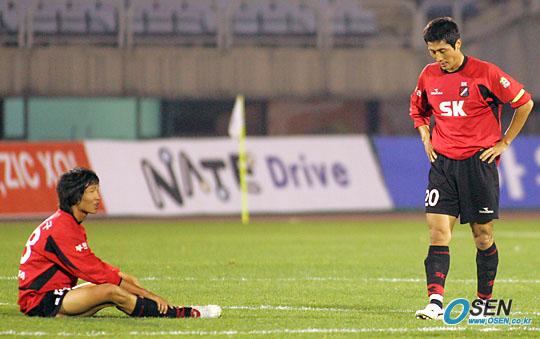9일 부천 종합운동장에서 벌어진 부천 SK와 대전 시티즌의 경기가 1-1로 끝나자 부천의 최철우(오른쪽)와 고기구가 허탈해 하고 있다. 부천은 후기리그 우승을 놓치며 4강 플레이오프에도 진출하지 못했다./부천=주지영 기자 jj0jj0@osen.co.kr [Copyright ⓒ OSEN(www.osen.co.kr) 무단전재 및 재배포 금지]