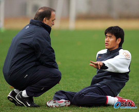 아드보카트 감독과 이야기를 나누는 설기현