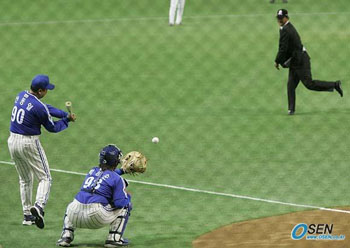 10여 년 전 어느 한국 프로야구 구장으로 돌아간 듯 했다. 일본 프로야구 심장부 도쿄돔에서 김일융이 시구를 하고 선동렬이 이를 받아 시타를 했다. 10일 오후 도쿄돔에서 펼쳐진 코나미컵 아시아시리즈2005 한국 대표 삼성 라이온즈와 일본 대표 지바 롯데 마린스와 예선전 경기에 앞서 시구 시타 행사가 있었다. 한국쪽 시구-시타자는 재일동포 야구선수 출신 김일융 씨와 선동렬 삼성 감독, 일본쪽 시구-시타자는 이번 대회 메인 스폰서인 코나미사의 우에하라 가즈히코 이사와 바비 밸런타인 지바 롯데 감독이 맡았다. 감색 정장 차림으로 마운드에 오른 김일융 씨는 얼굴에 미소를 머금고 현역 시절을 연상케하는 다이내믹한 와인드업으로 선동렬 감독에게 공을 던졌다. 김 씨와 우에하라 이사가 공을 던지자 선동렬-밸런타인 두 감독이 헛스윙을 해줬다. 요미우리 자이언츠에서 활약했던 김 씨는 1984년부터 3년간 한국 프로야구 삼성에서 뛰었다. 1985년 25승으로 김시진(현대 코치)과 공동 다승왕을 차지하는 등 54승 20패의 통산 성적을 남겼다. 일본으로 돌아간 뒤 다시 다이요 웨일스에 입단, 그 해 컴백상을 수상하기도 했다. 지난해 아테네 올림픽을 앞두고는 일본 야구대표팀 코디네이터를 맡았다. 도쿄돔=이종민 기자 mini@osen.co.kr [Copyright ⓒ OSEN(www.osen.co.kr) 무단전재 및 재배포 금지]