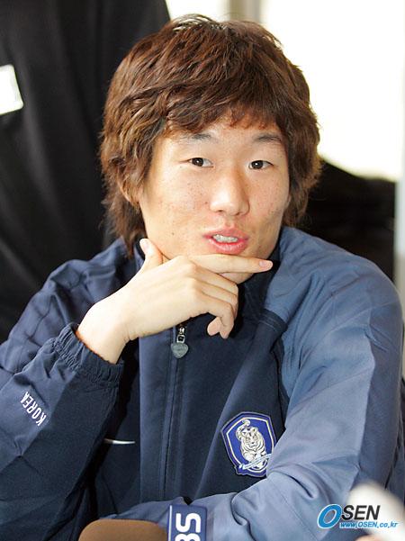한국대표팀이 오는 12일 스웨덴과의 친선경기에 앞서 11일 오전 서울 홍은동 그랜드 힐튼 호텔에서 합동 인터뷰를 가졌다. 박지성이 턱을 만지며 질문에 대답하고 있다./주지영 기자 jj0jj0@osen.co.kr [Copyright ⓒ OSEN(www.osen.co.kr) 무단전재 및 재배포 금지]