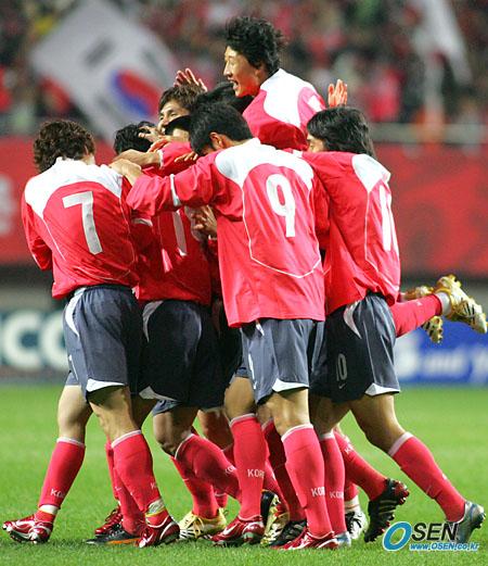 12일 저녁 서울 상암 월드컵경기장에서 벌어진 한국-스웨덴 친선경기 전반 초반 안정환이 선취골을 터뜨리자 선수들이 한데 엉켜 좋아하고 있다. /상암=주지영 기자 jj0jj0@osen.co.kr [Copyright ⓒ OSEN(www.osen.co.kr) 무단전재 및 재배포 금지]