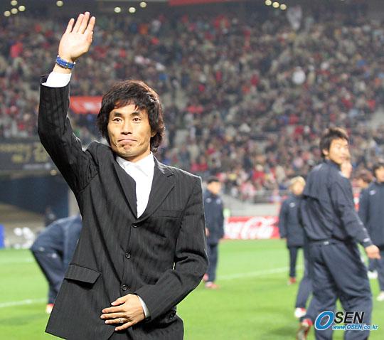 대표팀 은퇴식 후 관중들에게 인사하는 김태영