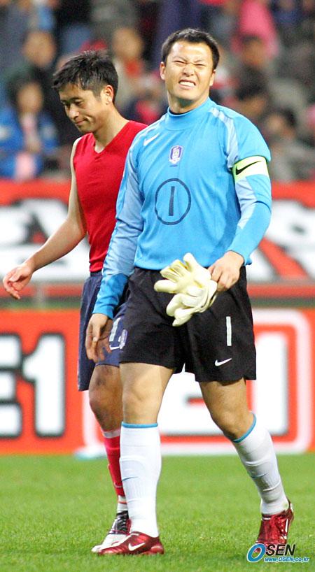 12일 저녁 서울 상암 월드컵경기장에서 벌어진 한국-스웨덴 친선경기는 2-2 무승부로 끝났다. 경기 종료 후 골키퍼 이운재가 웃는 건지 찡그리는 건지 모를 표정을 지으며 걸어나오고 있다./상암=주지영 기자 jj0jj0@osen.co.kr [Copyright ⓒ OSEN(www.osen.co.kr) 무단전재 및 재배포 금지]