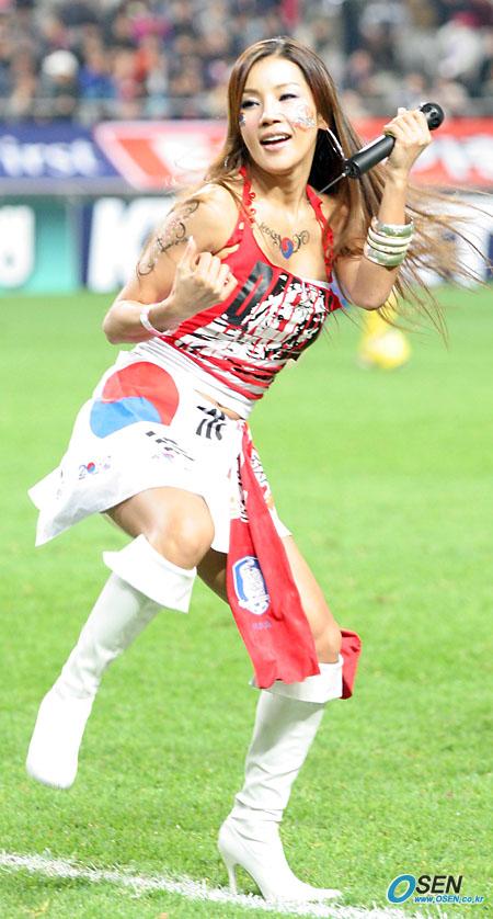 12일 저녁 서울 상암 월드컵경기장에서 벌어진 한국-스웨덴 친선경기는 2-2 무승부로 끝났다. 하프타임 때 '월드컵 가수' 미나가 그라운드에 나와 축하 공연을 갖고 있다./상암=주지영 기자 jj0jj0@osen.co.kr [Copyright ⓒ OSEN(www.osen.co.kr) 무단전재 및 재배포 금지]