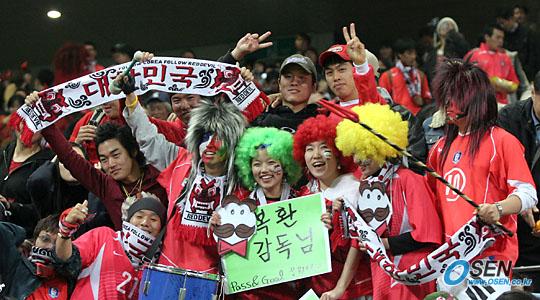 12일 저녁 서울 상암 월드컵경기장에서 벌어진 한국-스웨덴 친선경기는 2-2 무승부로 끝났다. 열성 축구팬들이 아드보카트 감독의 한국식 이름(?)인 '안복환 감독님'을 외치며 응원을 하고 있다./상암=주지영 기자 jj0jj0@osen.co.kr [Copyright ⓒ OSEN(www.osen.co.kr) 무단전재 및 재배포 금지]