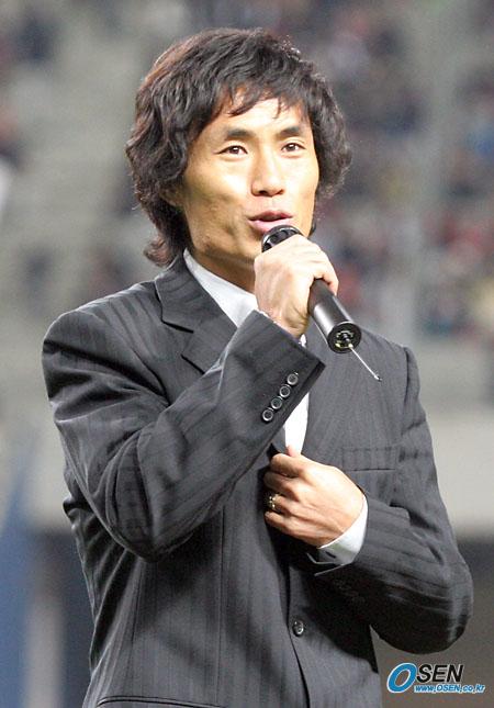 12일 저녁 서울 상암 월드컵경기장에서 벌어진 한국-스웨덴 친선경기 하프타임에 김태영의 국가대표 은퇴식이 열렸다. 김태영이 장내 마이크를 잡고 팬들에게 마지막 인사말을 전하고 있다./상암=주지영 기자 jj0jj0@osen.co.kr [Copyright ⓒ OSEN(www.osen.co.kr) 무단전재 및 재배포 금지]