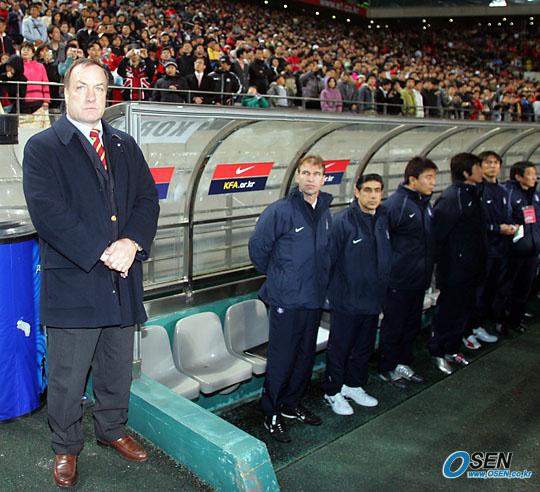 12일 저녁 서울 상암 월드컵경기장에서 벌어진 한국-스웨덴 친선경기는 2-2 무승부로 끝났다. 경기가 시작되기 직전 아드보카트 감독이 진지한 표정으로 그라운드를 응시하고 있다./상암=주지영 기자 jj0jj0@osen.co.kr [Copyright ⓒ OSEN(www.osen.co.kr) 무단전재 및 재배포 금지]
