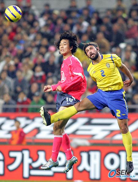 12일 저녁 서울 상암 월드컵경기장에서 벌어진 한국-스웨덴 친선경기는 2-2 무승부로 끝났다. 박주영이 스웨덴의 알렉산더 외스틀룬트와 공중볼을 다투고 있다. /상암=주지영 기자 jj0jj0@osen.co.kr [Copyright ⓒ OSEN(www.osen.co.kr) 무단전재 및 재배포 금지]