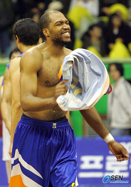 SK에 패한 뒤 웃통을 벗어 제친 단테 존스