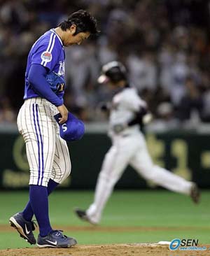 자신감만으론 안 되는 게 있었다. "컨디션이 너무 좋아서 탈이다. 우리가 우승한다"고 씩씩하게 말했던 삼성 배영수(24)가 도쿄돔을 가득 메운 대관중 앞에서 고개를 숙이고 말았다. 13일 일본 도쿄돔에서 열린 일본 롯데와 코나미컵 아시아시리즈 2005 결승전에 선발 등판한 배영수는 혼신의 역투를 했지만 일본시리즈 우승팀 롯데를 넘지 못했다. 배영수는 구장 전체를 쩌렁쩌렁하게 울리는 롯데 팬들의 열성스런 응원 함성 속에 1회 두차례나 만루의 위기를 맞고도 1실점으로 고비를 잘 넘겼지만 3회부터 다시 얻어맞기 시작했다. 5안타를 맞고 5실점한 가운데 특히 뼈아픈 두 방이 있었다. 1-1 동점이던 3회 2사 2,3루 위기에서 배영수는 롯데 6번 타자 베니에게 3-유간을 꿰뚫는 2타점 적시타를 허용했다. 초구에 이날 던진 79개의 공 중 가장 빠른 시속 150km짜리 빠른 공을 뿌렸지만 가운데로 몰리자 메이저리거 출신 베니의 방망이가 여지없이 돌았다. 베니는 일본 프로야구의 대표적인 강속구 투수인 마쓰자카 다이스케(세이부)와 지난해 첫 대결한 뒤 일본 언론과 인터뷰에서 "메이저리그에서 흔히 볼 수 있는 스타일의 투수"라고 밝힌 바 있다. 시속 100마일(약 161km)의 광속구를 뿌리는 투수들이 즐비한 메이저리그에서 6년을 뛰다온 베니에게 빠른 공으로 승부한 게 무리였다. 이전까지 이승엽을 제외한 롯데 중심타자들에겐 변화구 위주, 하위 타선은 직구 위주로 승부하며 잘 헤쳐나가던 배영수였기에 아쉬웠다. 4회 2사 1루에서 와타나베 마사토에게 맞은 2점 홈런은 더 아팠다. 롯데 2번타자로 선발 출장한 일본시리즈 MVP 이마에가 손등에 공을 맞아 4회 교체돼 들어온 와타나베는 올 시즌 거의 전부를 2군에 머문 2군 선수다. 올해 1군 출장 경력이라봐야 20경기에서 14타석에 나선 게 전부로 홈런은 물론 한 개도 없었다. 와타나베는 그러나 배영수의 직구가 한복판 높게 몰리자 놓치지 않고 잡아당겨 빨랫줄 같은 타구를 도쿄돔 외야 스탠드에 꽂아버렸다. 2군 타자들도 실투는 놓치지 않는 일본 프로야구의 매서움을 와타나베가 홈런 한 방으로 배영수에게 제대로 가르쳐줬다. 이번 대회에 앞서 옛 팀 선배 이승엽은 "나와 승부에만 신경쓰다 다른 타자들에게 맞을 수 있다"고 후배 배영수에게 충고를 던진 바 있다. 배영수는 이승엽을 연속 삼진과 유격수 플라이로 잡아냈지만 베니와 와타나베에게 뼈아픈 한 방을 맞아 이승엽의 불길한 예감은 현실이 됐다. 이날 경기에 앞서 선동렬 감독은 "배영수가 자신감을 보이는 스타일이라 좋긴 하지만 롯데 관중들의 대단한 응원 속에 마운드에 오르면 긴장이 되지 않을 수 없을 것"이라며 "초반 특히 1회가 고비가 될 것 같다"고 말했다. 1회는 힘겹게 넘겼지만 4이닝이 일본 프로야구가 배영수에게 허용한 전부였다. 도쿄돔=이종민 기자 mini@osen.co.kr [Copyright ⓒ OSEN(www.osen.co.kr) 무단전재 및 재배포 금지]