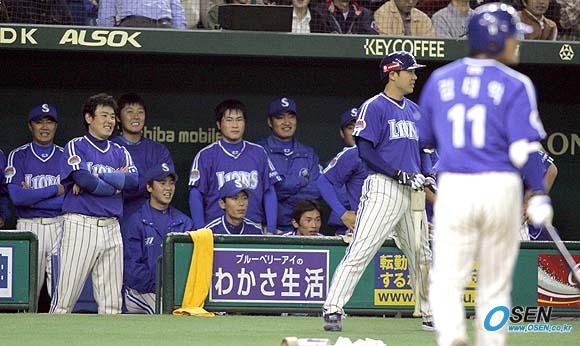 13일 일본 도쿄돔에서 펼쳐진 코나미컵 아시아시리즈 2005 삼성과 롯데 마린스의 결승전서 롯데가 5-3으로 승리했다. 9회초 2사 1,2루서 삼성의 마지막 타자 김대익이 삼진으로 물러나자 덕아웃의 선수들이 아쉬운 표정을 짓고 있다./도쿄돔=손용호 기자 spjj@osen.co.kr [Copyright ⓒ OSEN(www.osen.co.kr) 무단전재 및 재배포 금지]